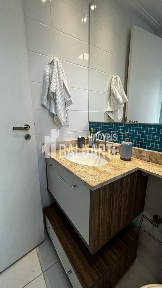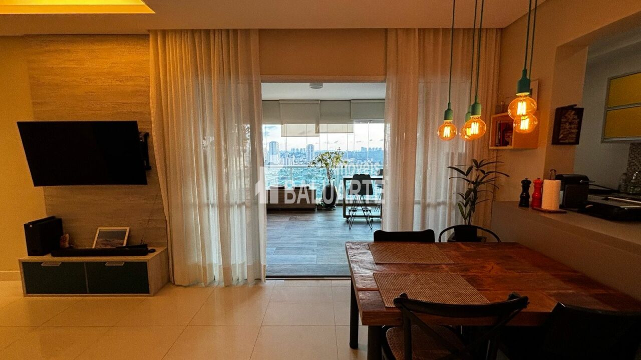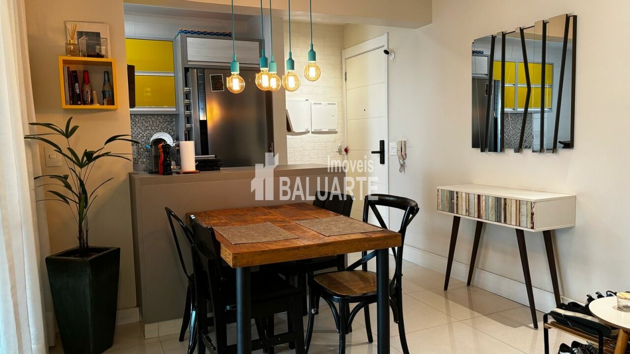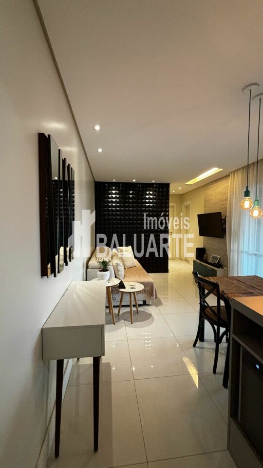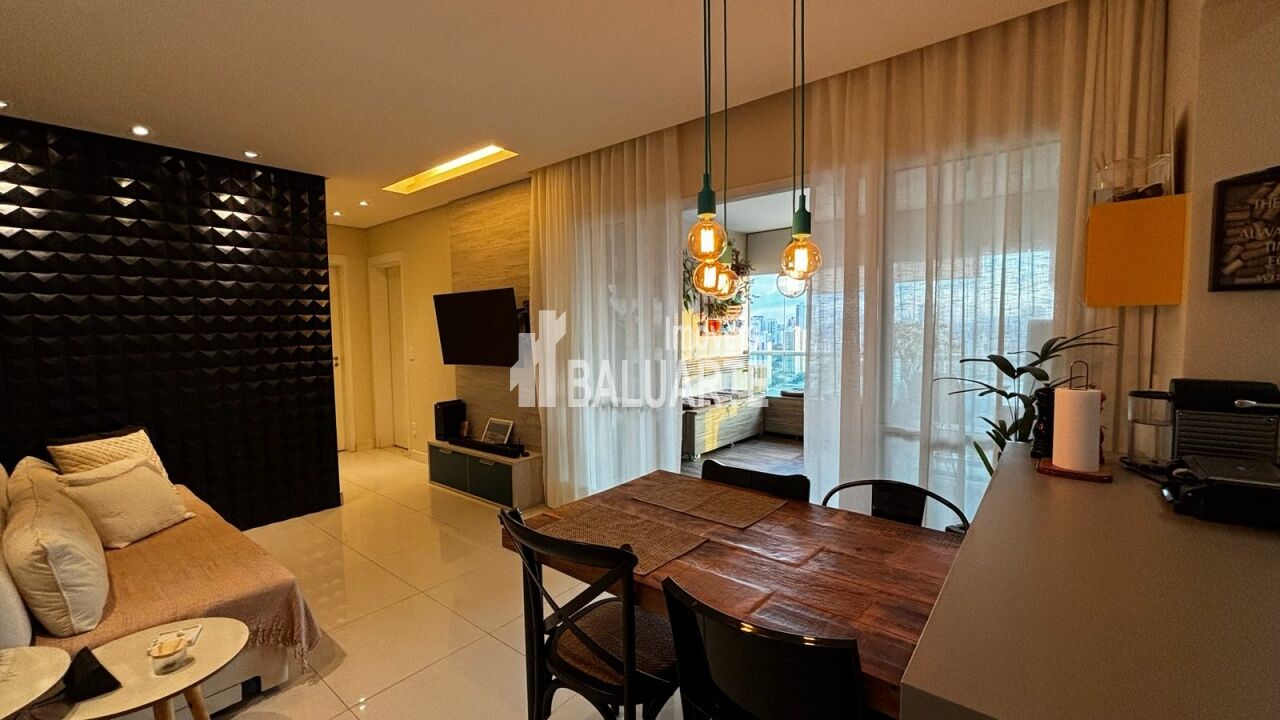 indo apartamento de 73m², perfeito para quem busca conforto e um ambiente moderno. A sala ampla, projetada para 2 ambientes, possui piso laminado e recebe ótima iluminação natural. São 2 dormitórios espaçosos com armários embutidos, sendo 1 suíte com ar-condicionado, além de mobília de primeira qualidade. A cozinha moderna com armários planejados e a área de serviço com tanque completam a praticidade do imóvel. Conta ainda com 2 vagas de garagem.