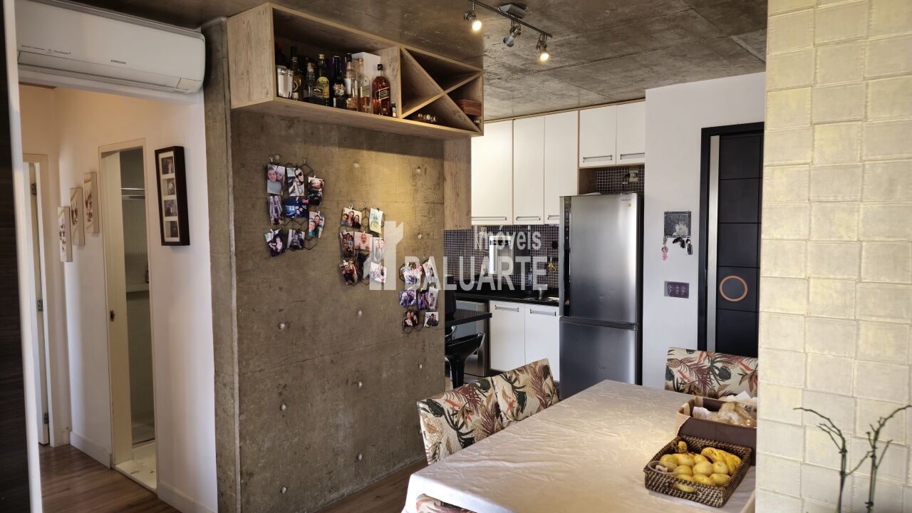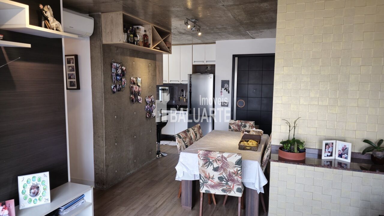Sala ampla integrada com cozinha.