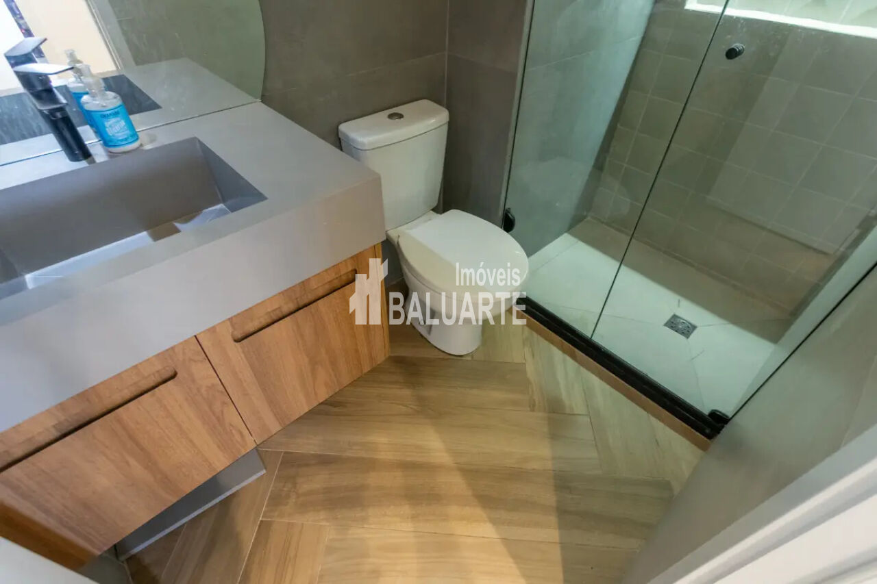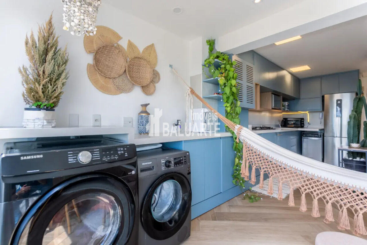 O apartamento reformado está em ótimas condições, conta com sala confortável, lavabo, e área de serviço funcional.