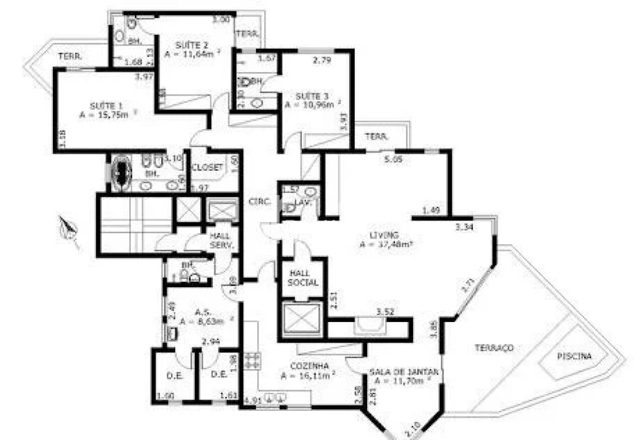 HALL LIVING 3 AMBS, HD 4 STS, CLOSET, TERRACO GOURMET COM PISCINA, LAVABO, LAREIRA, COZINHA, AE, AS, QE, WC...