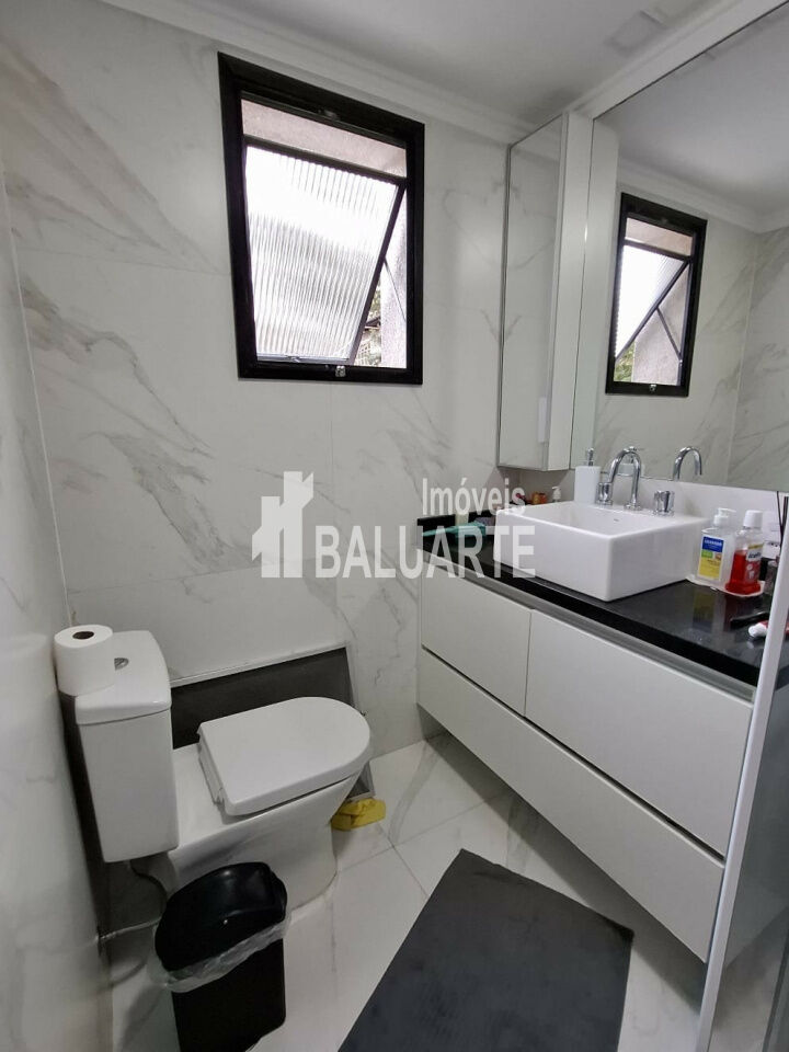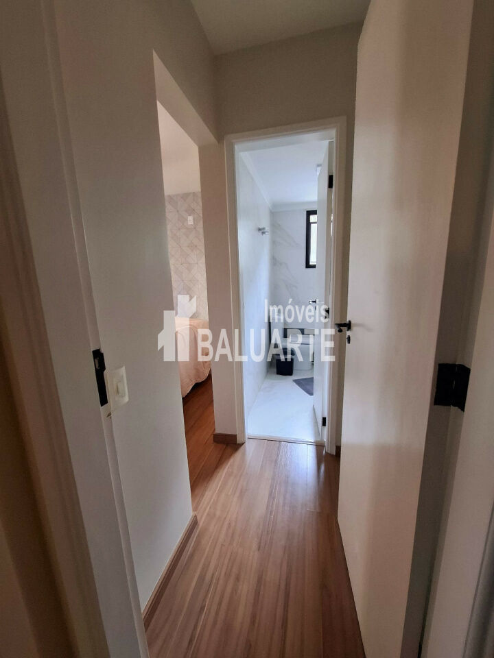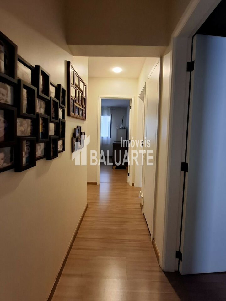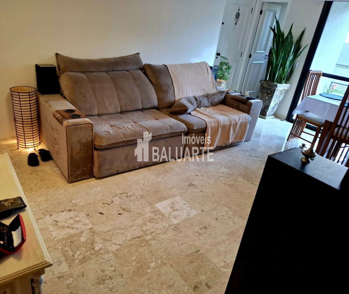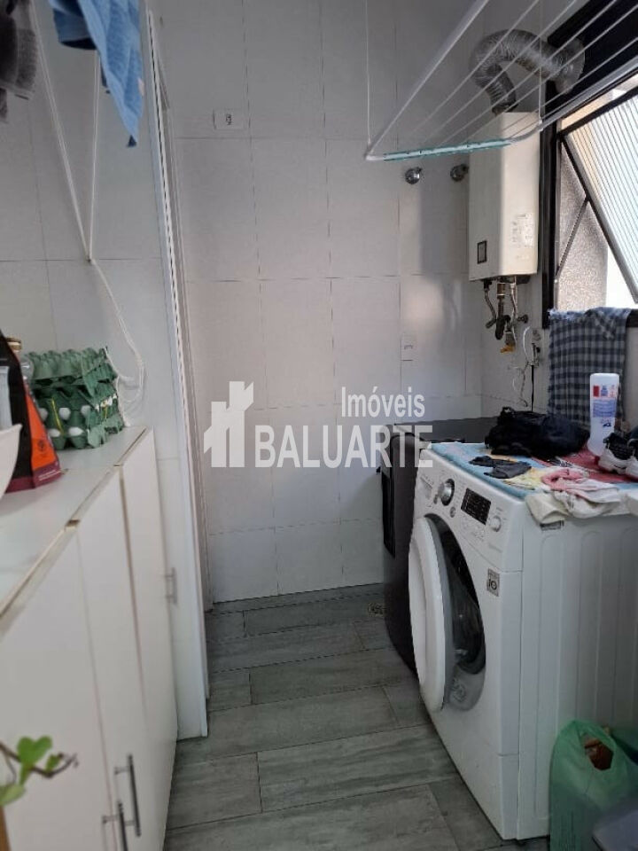 Sala 2 ambientes com sacada , piso em mármore travertino polido + Lavabo 3 dorms , suíte + banho social , todos com piso de madeira laminado aquecedor a gás. Dependências de empregado com banheiro. 4 banheiros no total.