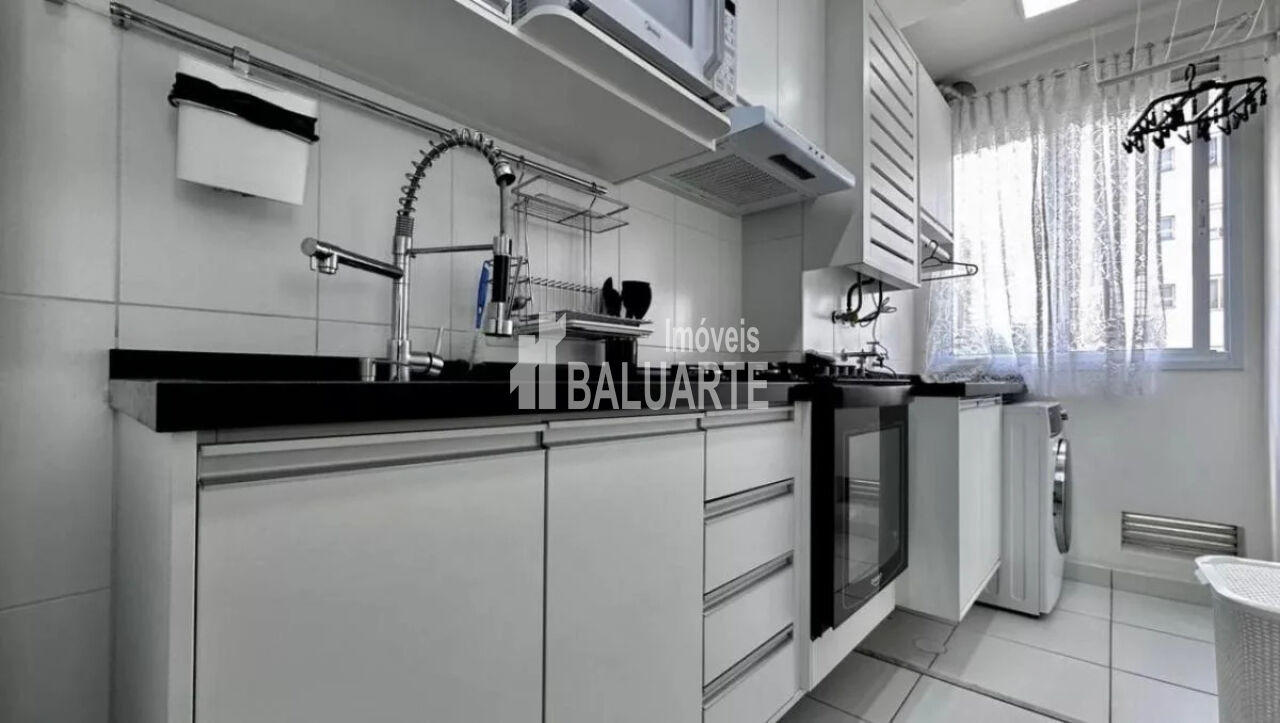 Apartamento de 43m², com 2 quartos e móveis planejados em todos os cômodos em perfeito estado. Cozinha aberta e integrada à sala, com canto alemão para mais funcionalidade. Banheiro com ventilação natural. O condomínio oferece salão de festas mobiliado, churrasqueira, salão de jogos, playground, redário e horta comunitária.