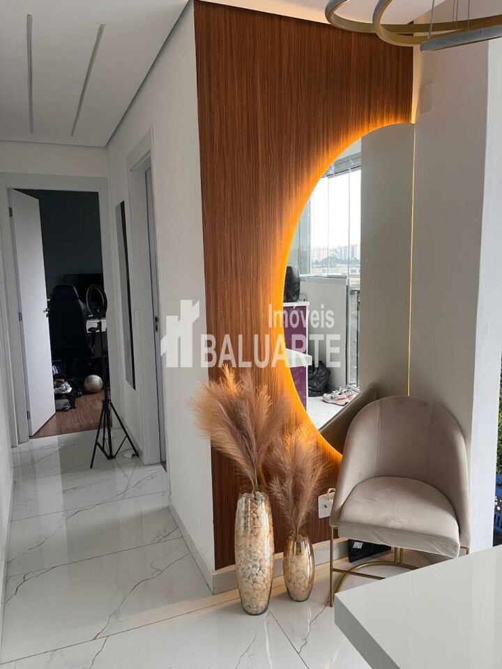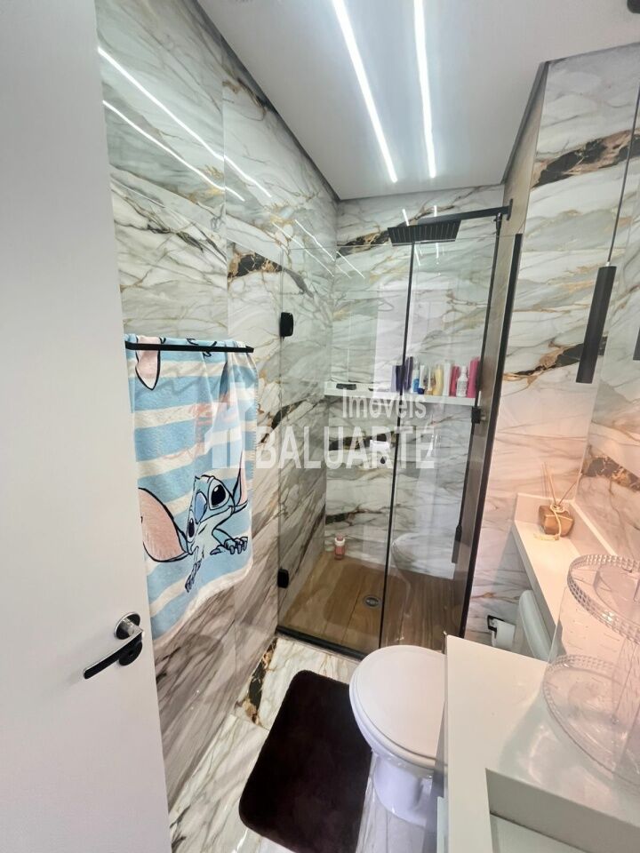 Apartamento com Designer Moderno com Porcelanato e Sancas com Led em TODOS os Ambientes, Armários Planejados na Cozinha, Dormitórios, Banheiros e Lavanderia e Sapateira e Painel Ripado na Sala