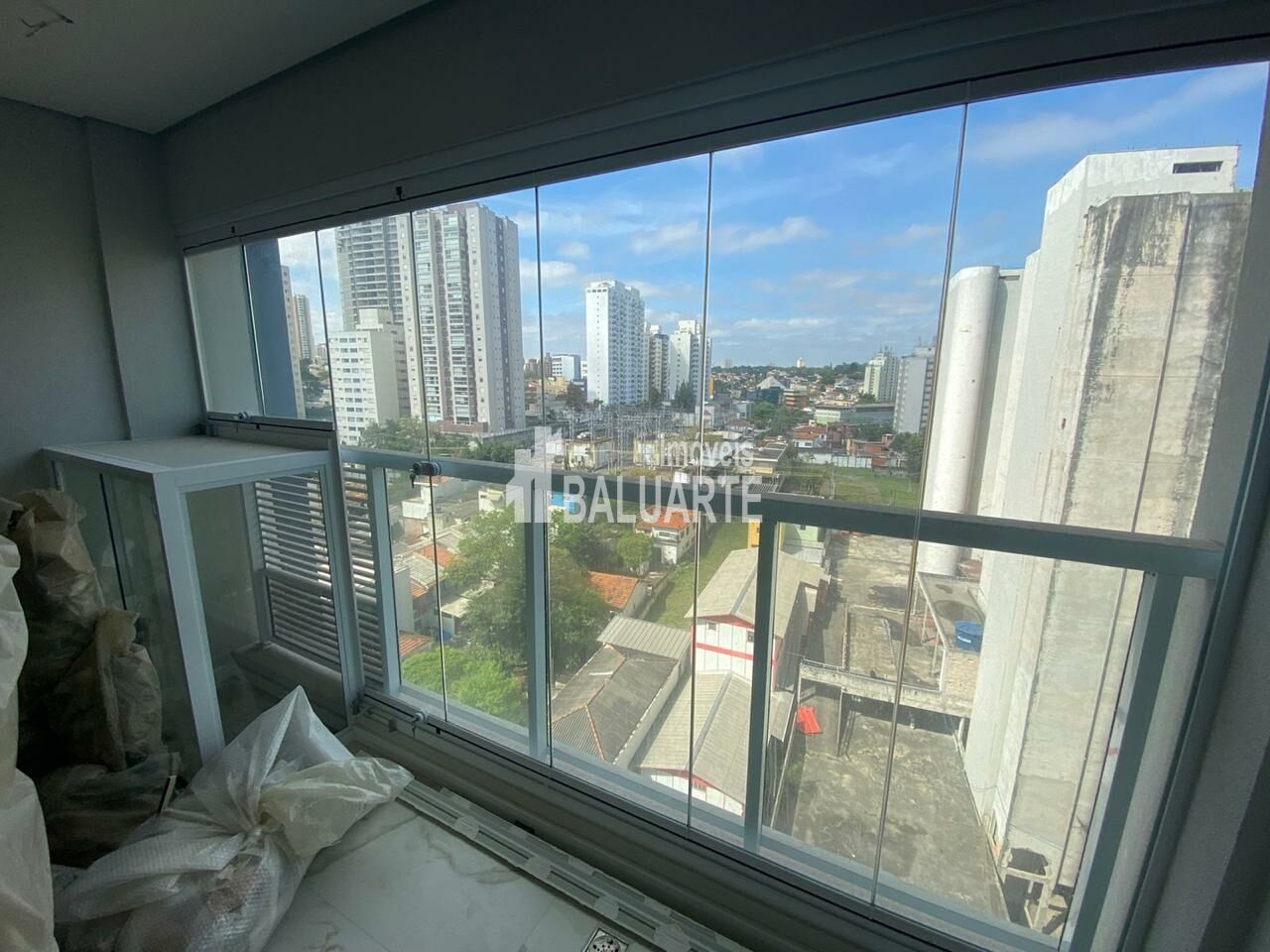 varanda com vidros e infraestrutura de ar condicionado pronta.