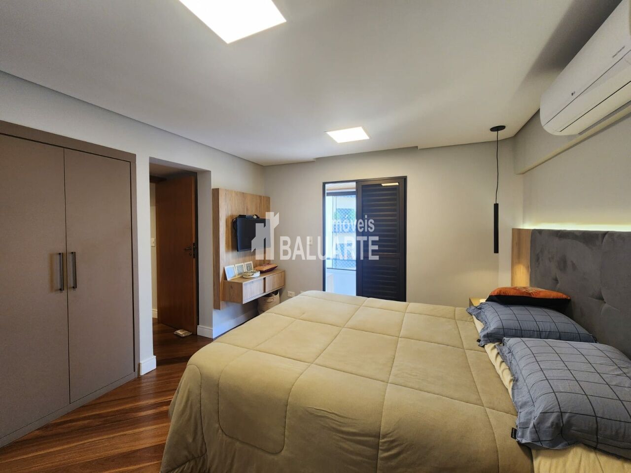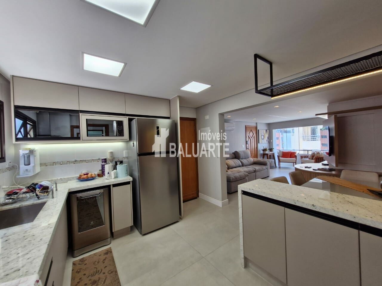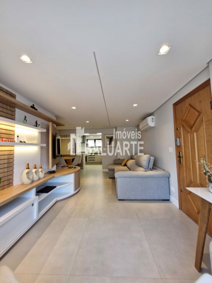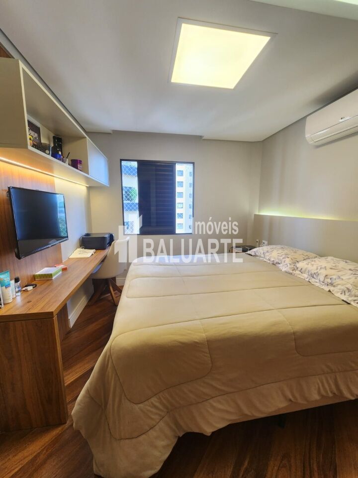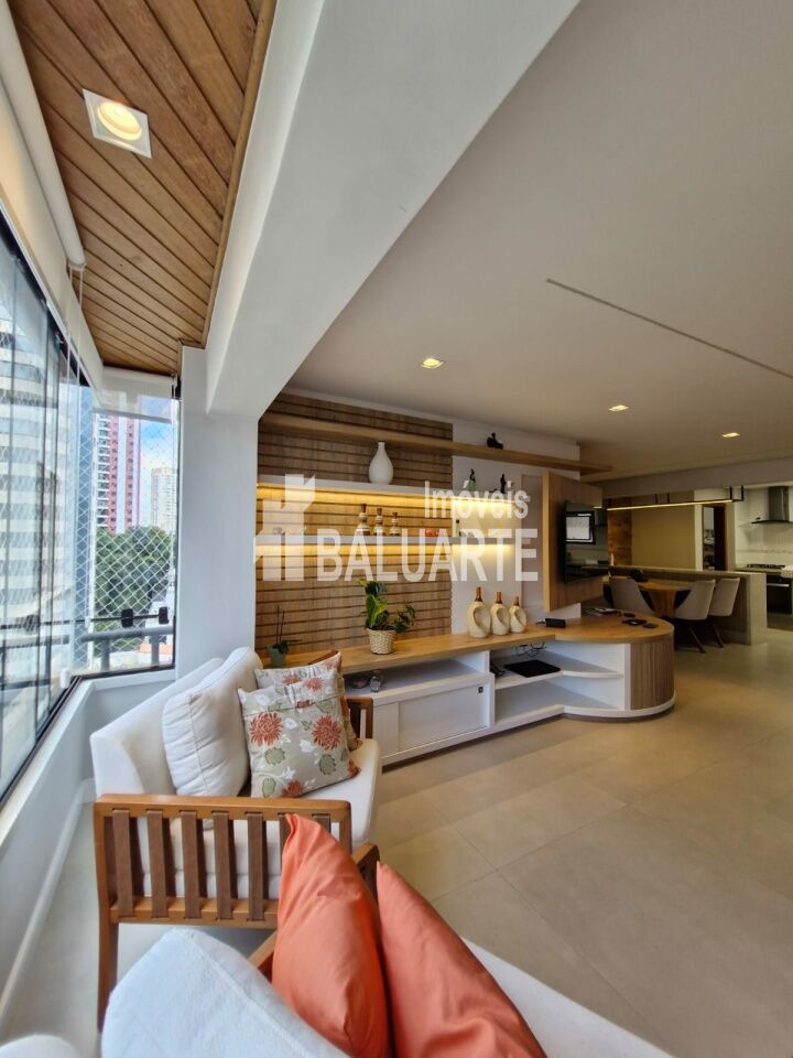 Lindo Apartamento Apartamento de 123m, andar alto, totalmente reformado. Toda a fiação foi substituída por nova, inclusive com troca do quadro de força. Instalação de ar condicionado em todos os ambientes (3 quartos e sala). Substituição dos pisos frios dos banheiros/lavabo, sala, cozinha, lavanderia e despensa (porcelanato 90x90). Troca de todas as torneiras. Armários embutidos novos nas áreas da cozinha, sala, área de serviço e despensa. Box blindex até o teto nos banheiros. Deck em madeira cumaru na varanda da suíte master, para a área técnica (instalação da condensadora do ar condicionado). Mudança de layout para espaço aberto (sala e cozinha integrados), separados por uma bancada em granito (pedra pytaia). Reforma dos armários embutidos dos quartos.