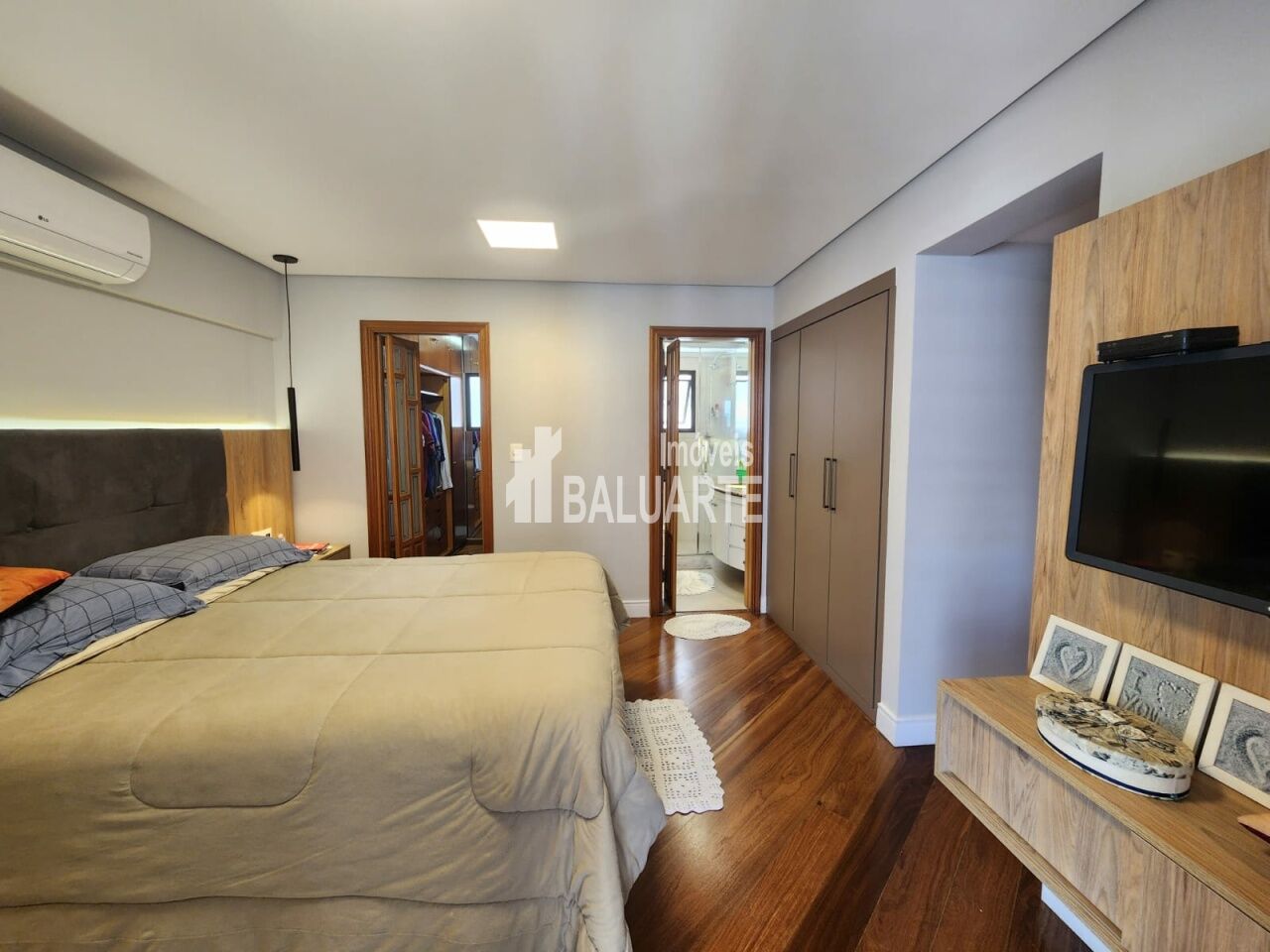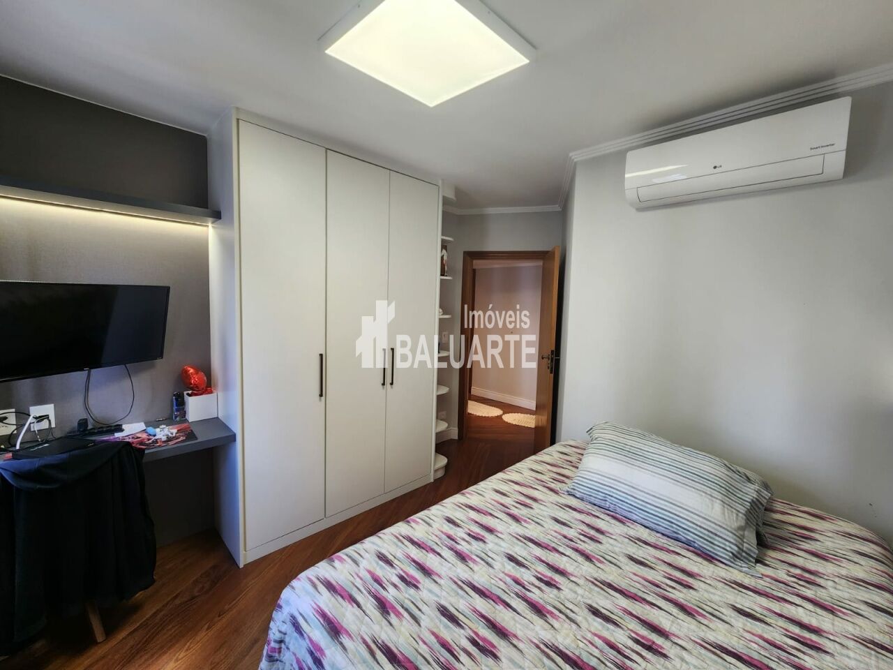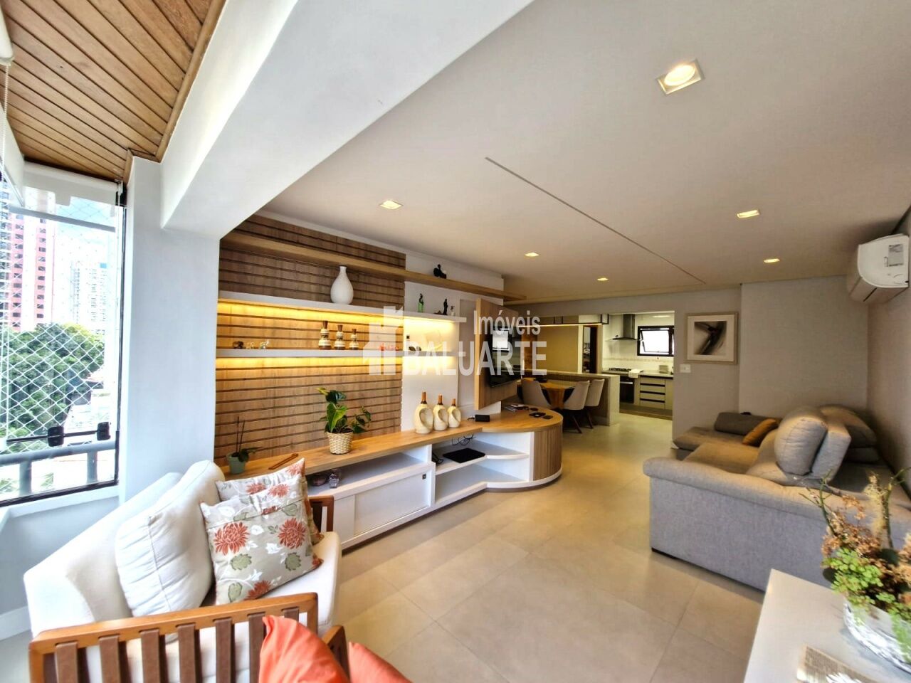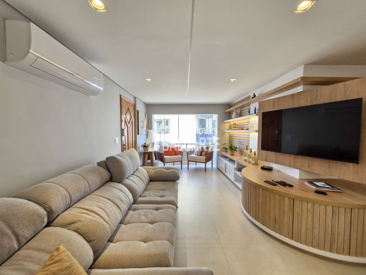 Lindo Apartamento Apartamento de 123m, andar alto, totalmente reformado. Toda a fiação foi substituída por nova, inclusive com troca do quadro de força. Instalação de ar condicionado em todos os ambientes (3 quartos e sala). Substituição dos pisos frios dos banheiros/lavabo, sala, cozinha, lavanderia e despensa (porcelanato 90x90). Troca de todas as torneiras. Armários embutidos novos nas áreas da cozinha, sala, área de serviço e despensa. Box blindex até o teto nos banheiros. Deck em madeira cumaru na varanda da suíte master, para a área técnica (instalação da condensadora do ar condicionado). Mudança de layout para espaço aberto (sala e cozinha integrados), separados por uma bancada em granito (pedra pytaia). Reforma dos armários embutidos dos quartos.
