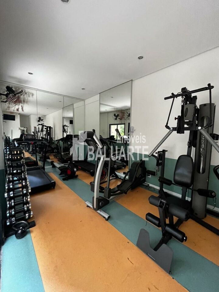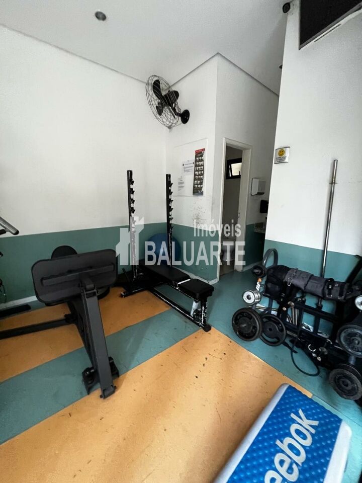 Condomínio com academia, piscina no terraço e amplo salão de festas com churrasqueira.