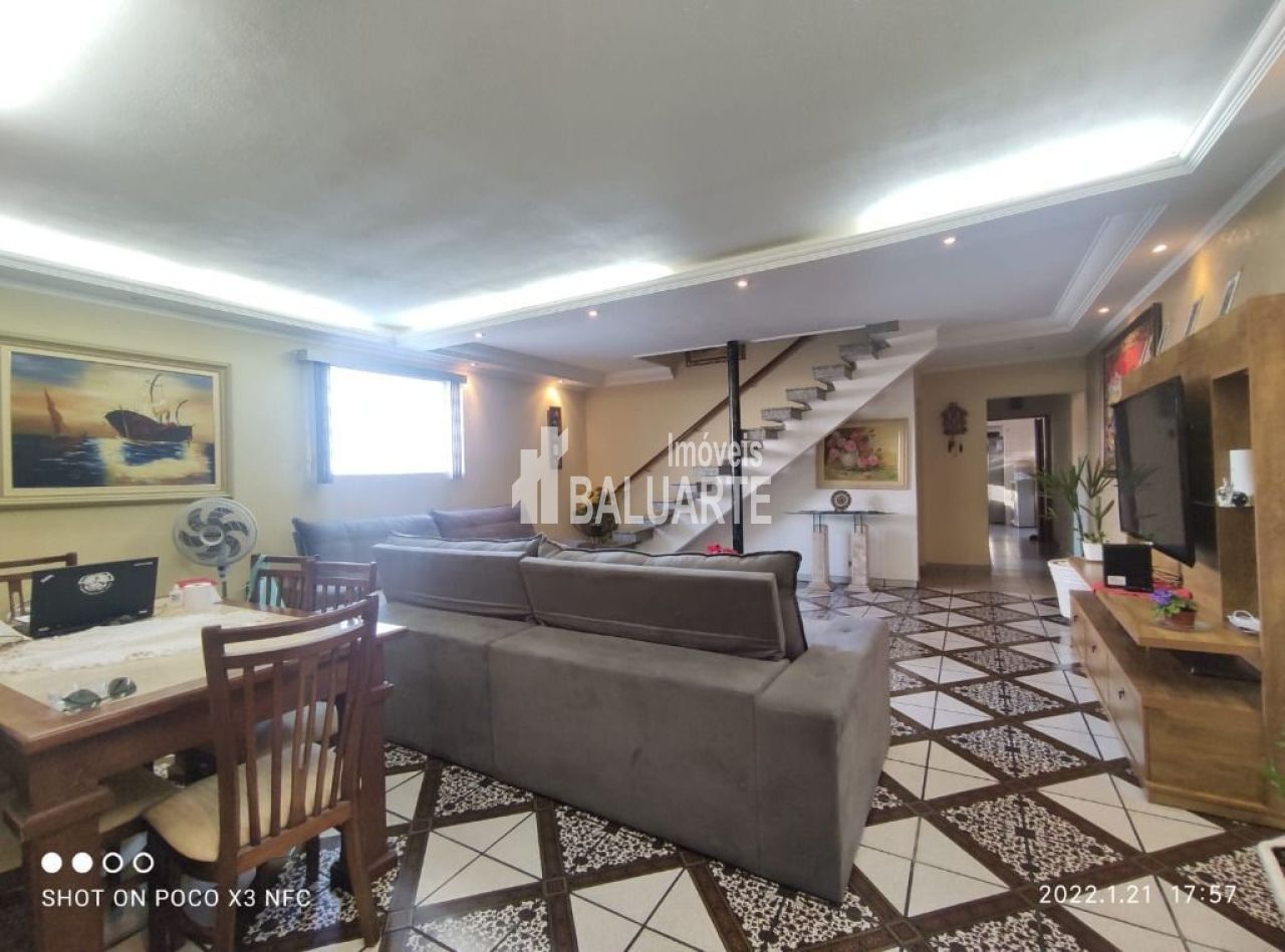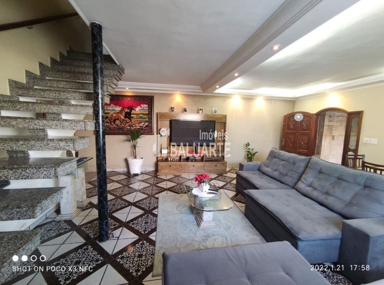 Lindo sobrado com ampla sala ,lavabo , cozinha com armários churrasqueira e área de serviço , são 4 dormitórios , 3 suítes , sendo que a suíte principal tem uma excelente varanda , tem 5 banheiros , 3 vagas (GARAGEM), um grande salão no subsolo.Ótima Localização , próximo de Comercio ,Marcados , escolas, Bancos , Shopping ,Fácil acesso a condução .IMPERDIVEL!