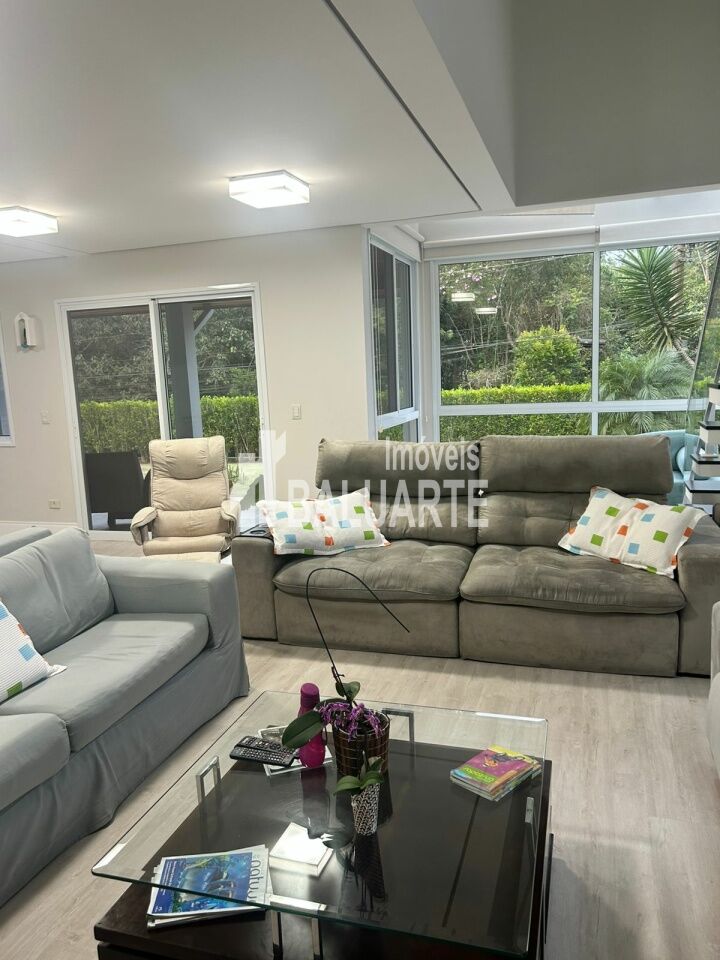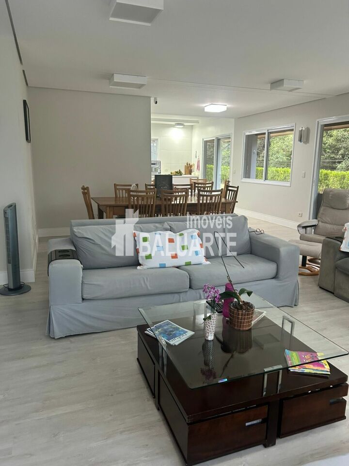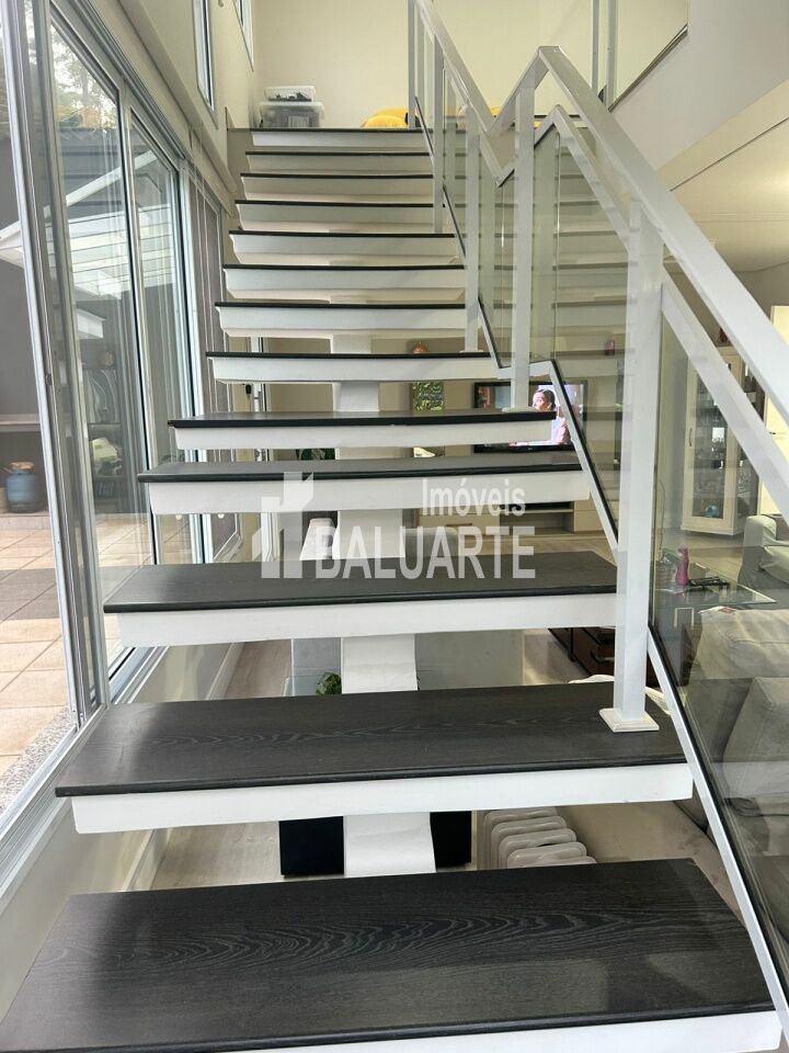 5 quartos, sendo 3 suítes (2 no andar superior e uma menor no térreo)