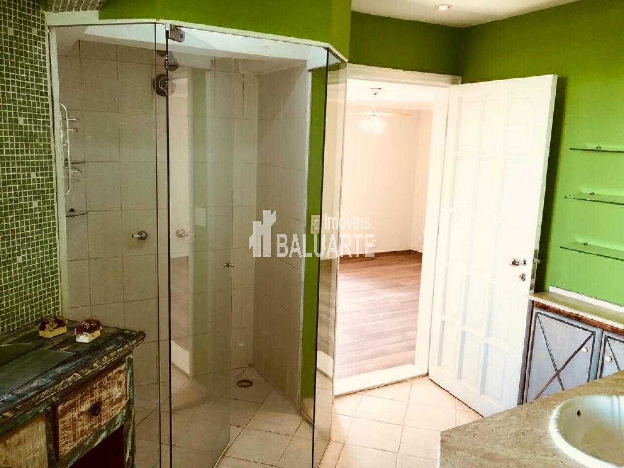 Na parte superior, área de churrasco com forno, cozinha + suíte master com 2 closets (ele e Ela) com banheiro com jacuzzi e quintal amplo, permitindo uma vista maravilhosa para o coração do Jardim Marajoara.