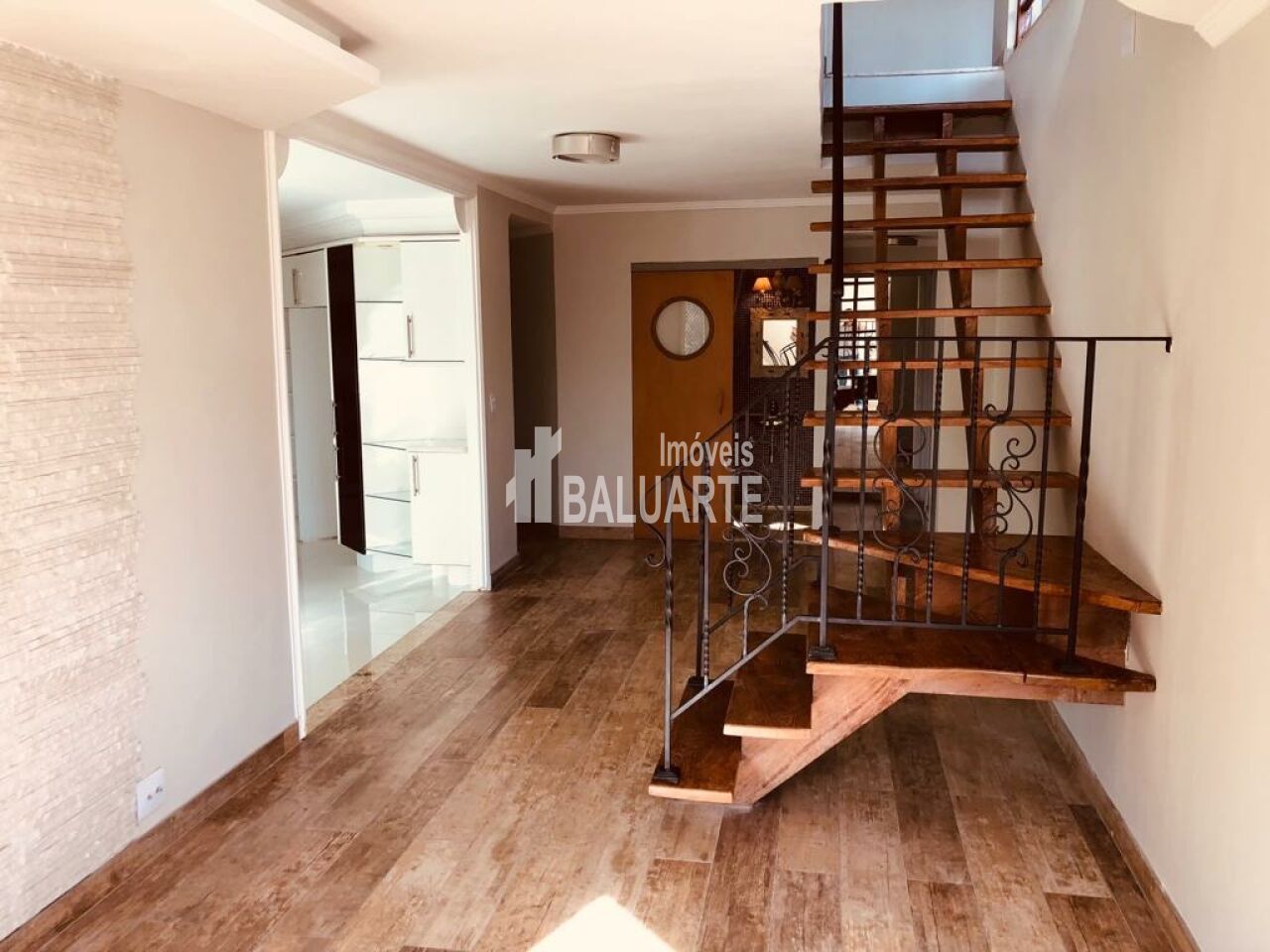 Cobertura duplex no Jardim Marajoara, na parte inferior, sala ampla com janelas by window, lavabo, sala de TV, dois dormitórios, banheiro social, sacada n o dormitório, cozinha ampla com pisos vinílico, porcelanato, laminado e cerâmica.