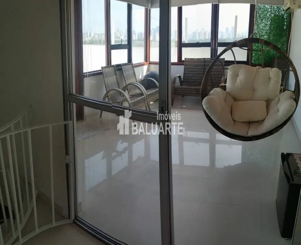 Cobertura com ótima privacidade, piscina, churrasqueira e sol o dia inteiro. Possui uma sala de inverno , que pode ser utilizada como escritório ou 4º dormitório.