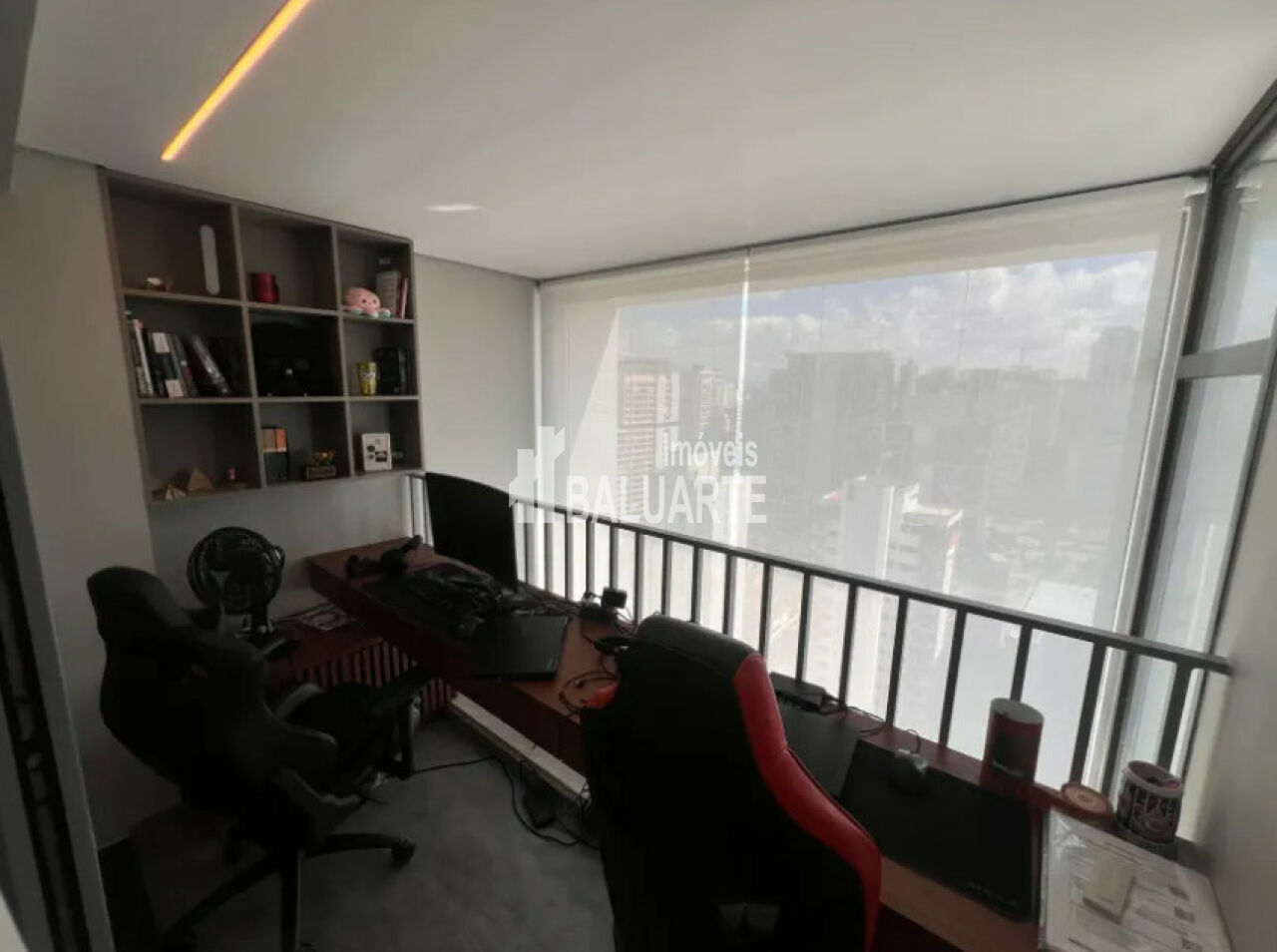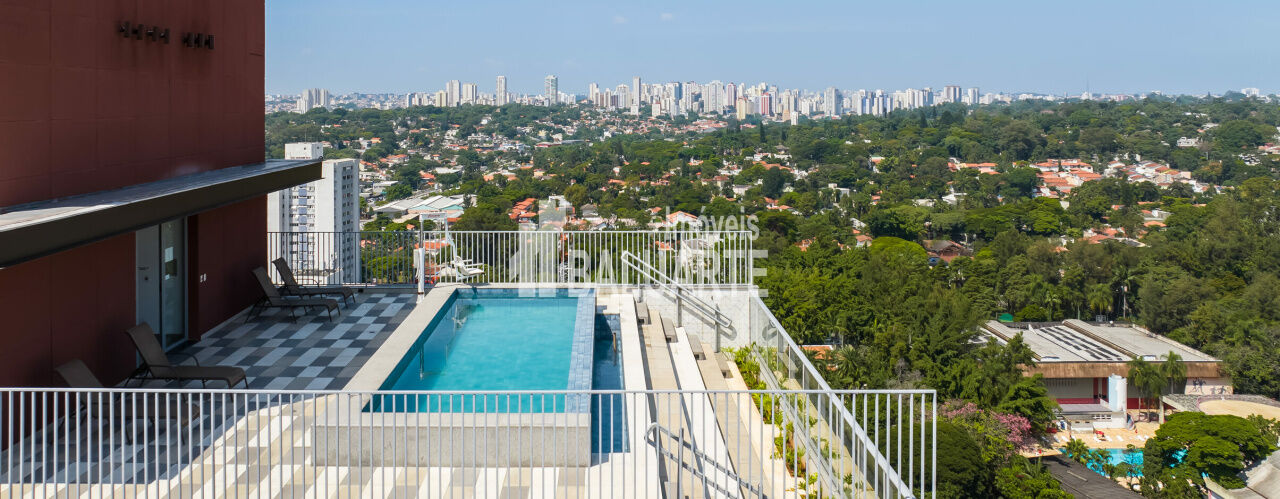 Duplex no andar mais alto do prédio com vista livre para venda no Brooklin, com 61m², mobília completa, pé direito duplo, 1 dormitório, banheiro e lavabo, armários planejados, cozinha americana, varanda e uma vista privilegiada.