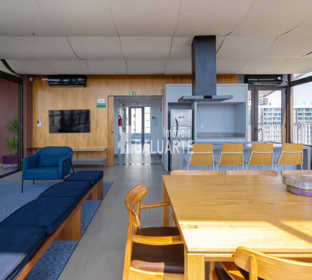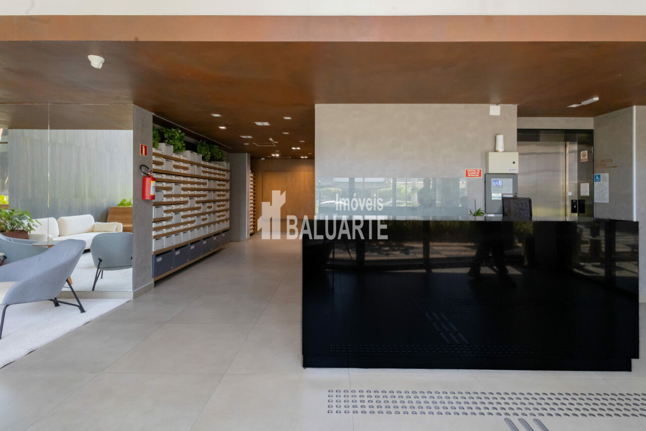 Possui piscina e salão de festas no rooftop, academia, espaço gourmet, coworking e segurança com monitoramento 24 horas.