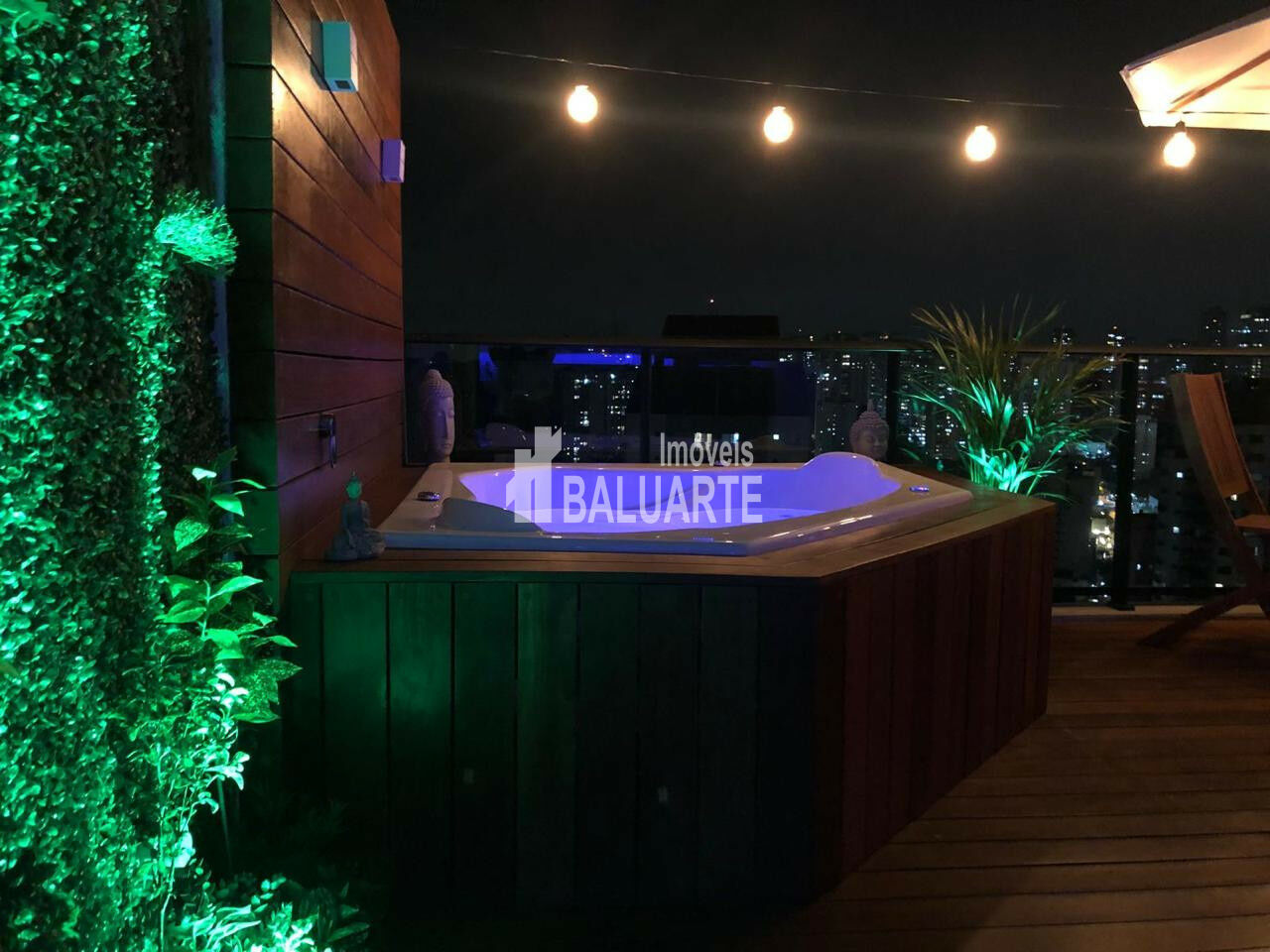 - Paisagismo na cobertura, com jardim vertical , deck e painel em cumaru