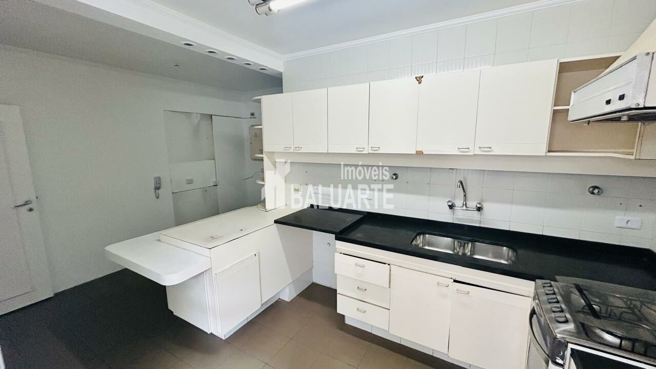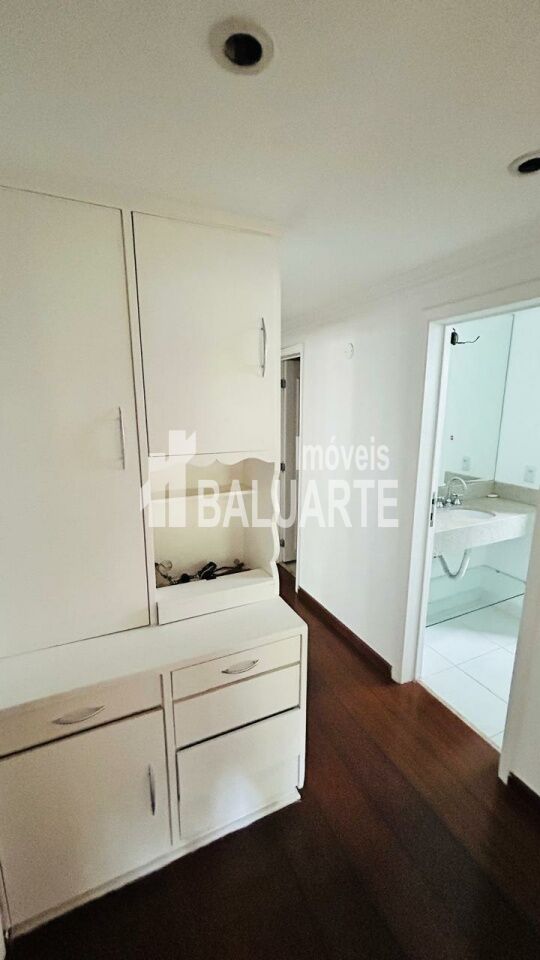 Dormitórios com armários embutidos, incluindo o closet, da mesma forma que a cozinha que alêm dos armários planejados possui um balcão em granito na divisão com entrada de serviços.