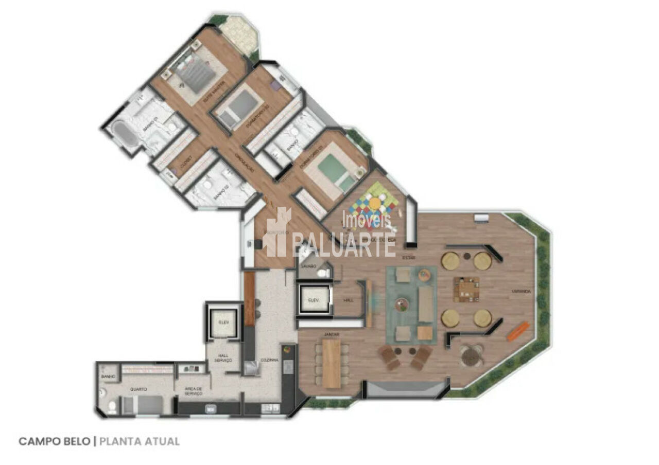 A suíte máster é um verdadeiro retiro, equipada com 2 closets, dois banheiros e uma varanda privativa, tudo completado por piso de madeira que exala sofisticação por todos os ambientes íntimos.