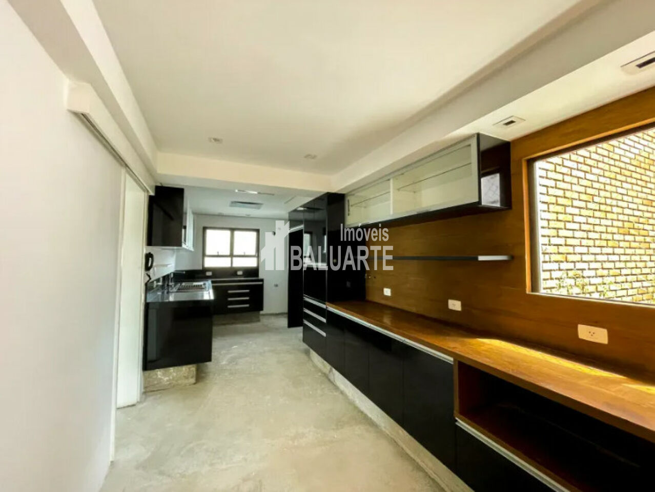 Uma cozinha espaçosa com móveis e armários planejados que pode ser ampliada para se integrar à sala de jantar, criando um espaço coeso e convidativo para chefs de toda habilidade culinária.