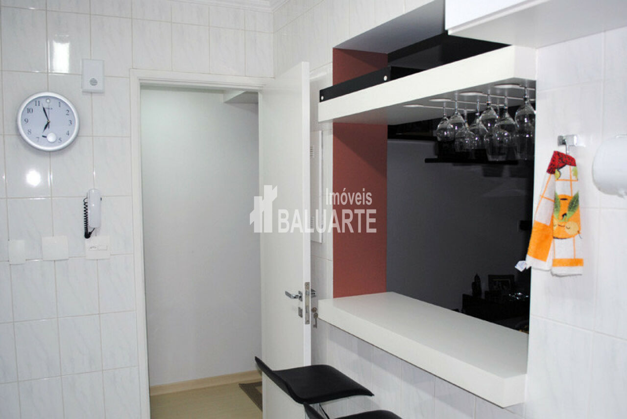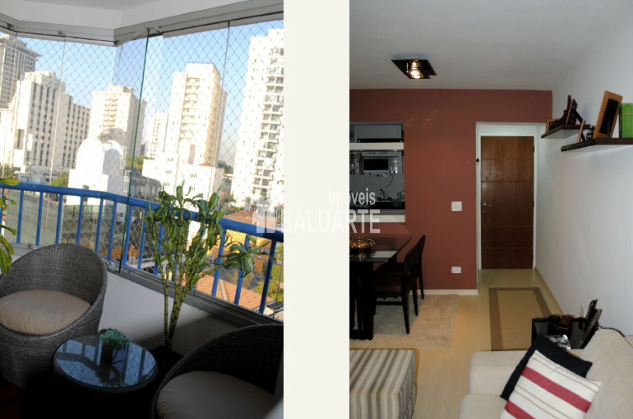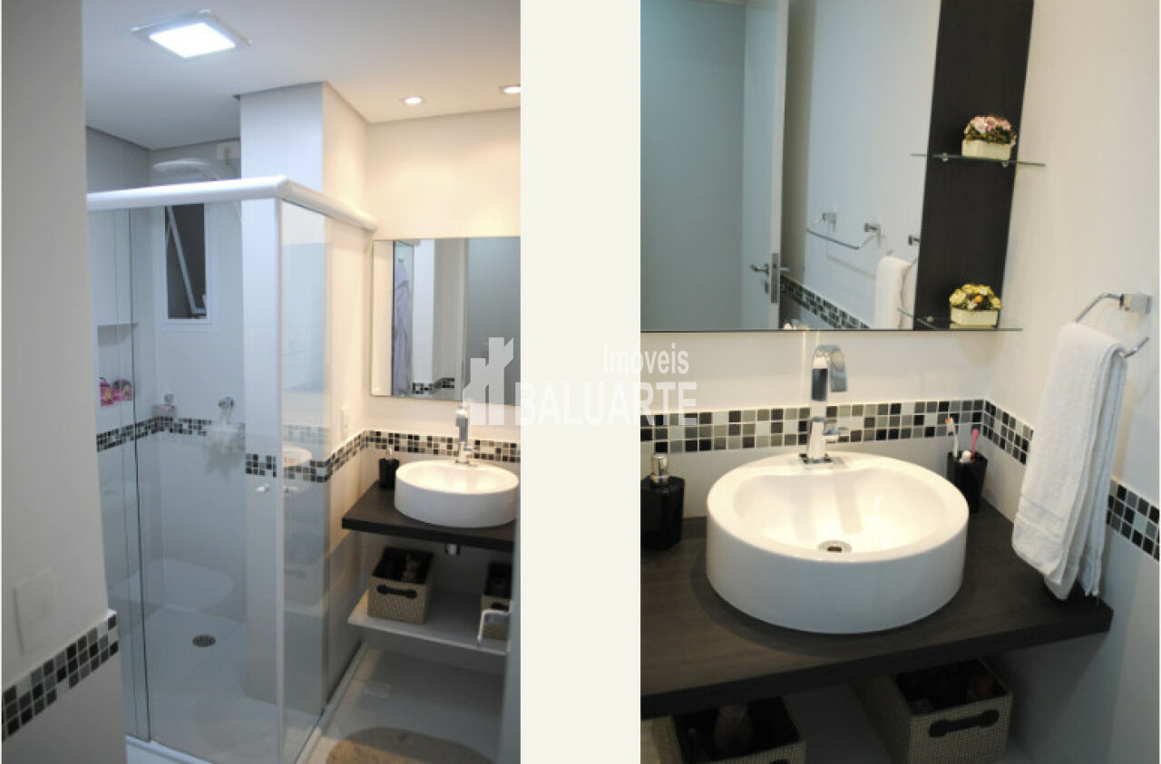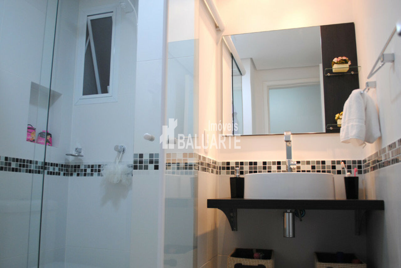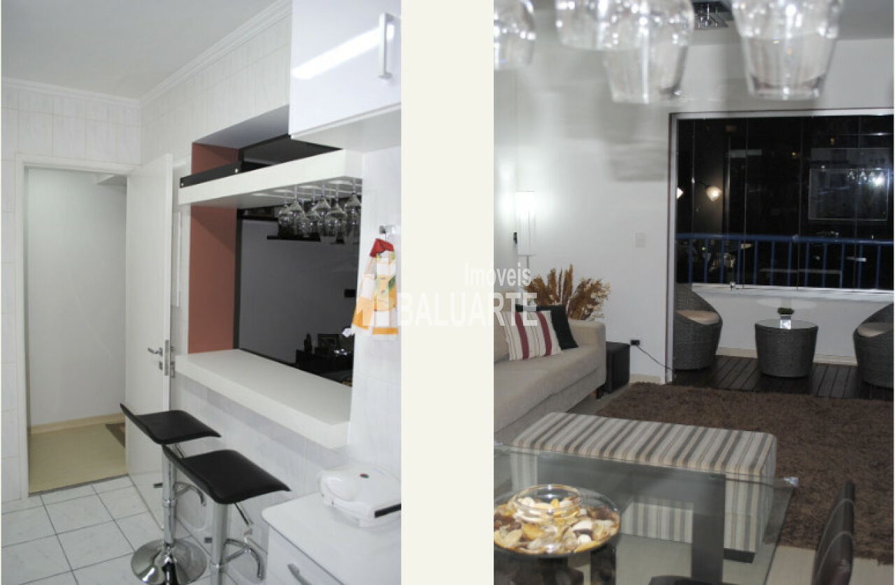 Apartamento com 2 dormitórios sendo 1 suíte, 1 banheiro social, sacada envidraçada com deck de madeira, bar decorativo com cubos na sala, sala ampliada para três ambientes com deck de madeira, cozinha americana c/ passa pratos e porta taças, 2 vagas de garagem. - armários embutidos nos dois quartos, janelas anti-ruído nos dois quartos, armários embutidos na cozinha, divisória de vidro entre lavanderia e cozinha, armário embutido no corredor, porta de correr divisória sala e quartos, porta de entrada nova, piso laminado claro, mesa de trabalho na sala.