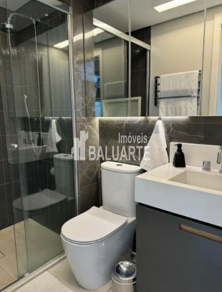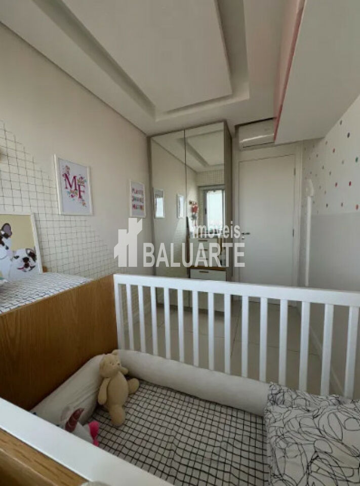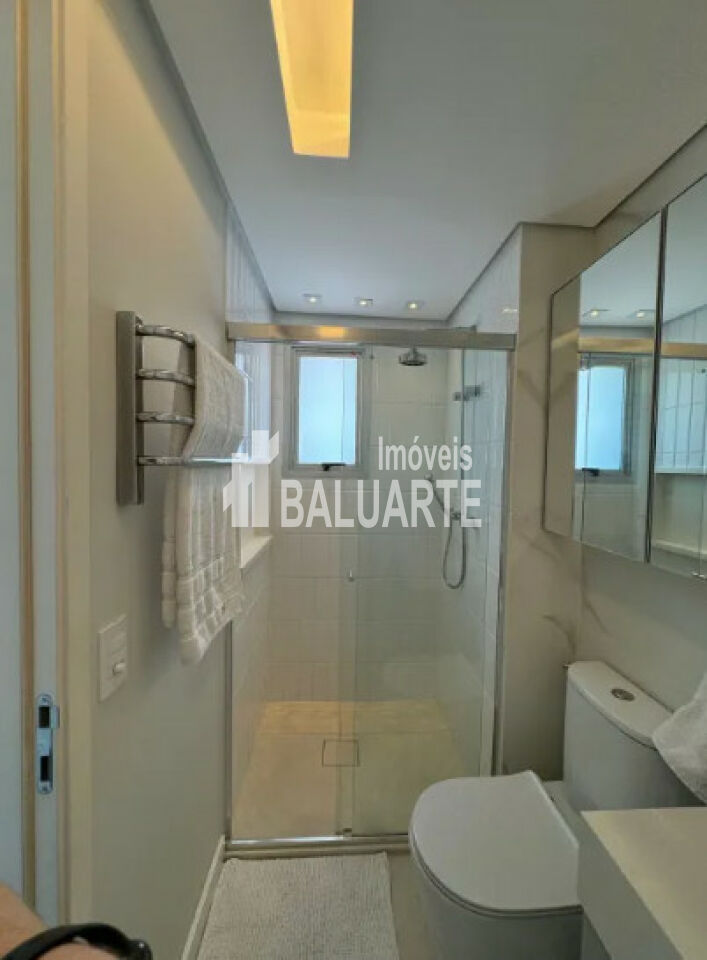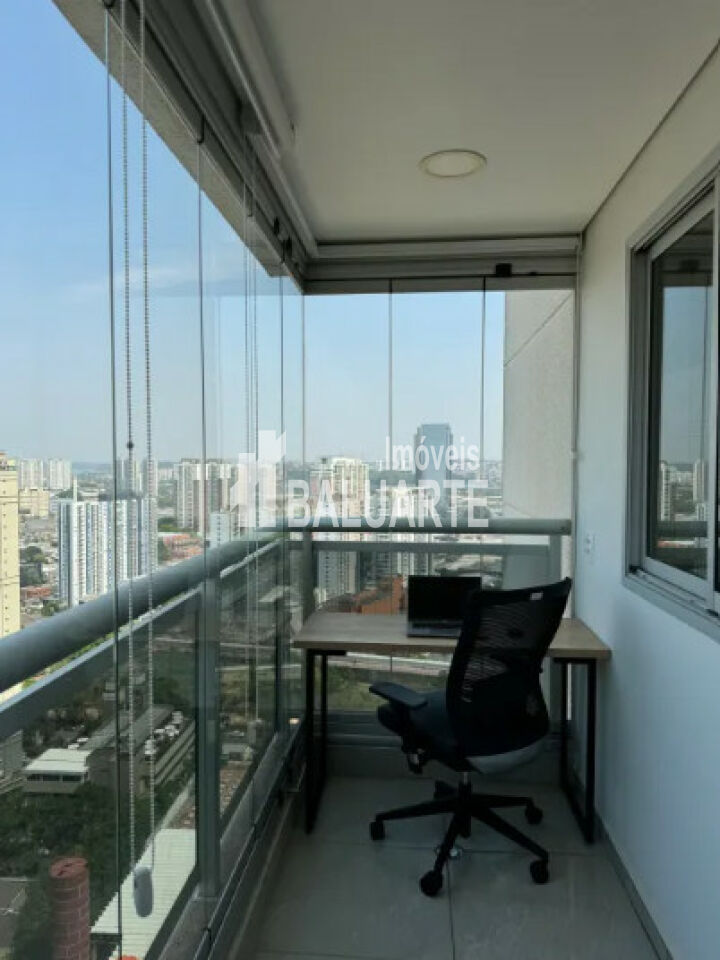 Sala de jantar em canto alemão com baú. Dois quartos, dois banheiros sendo 1 suíte. Escritório montado na varanda com vista livre. Andar alto, sol da manhã. Fechamento de sacada.