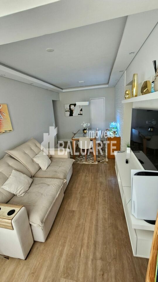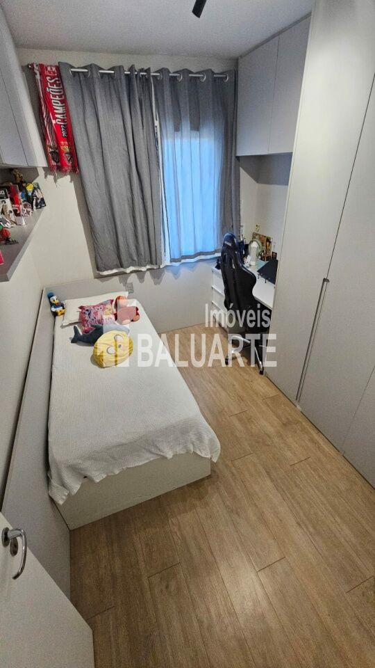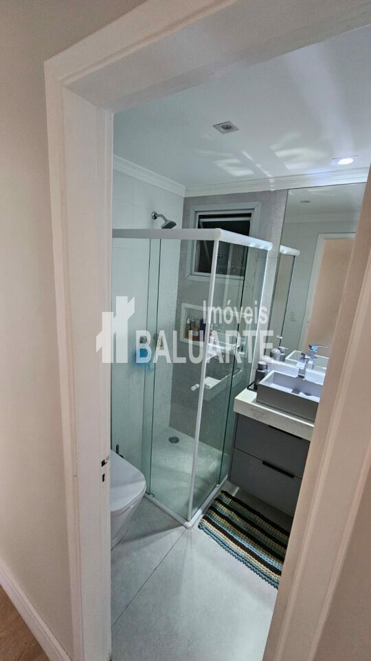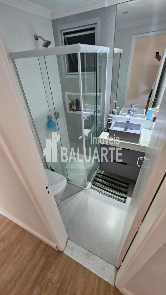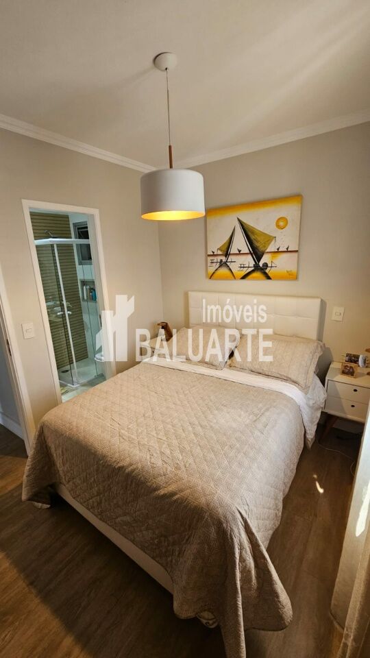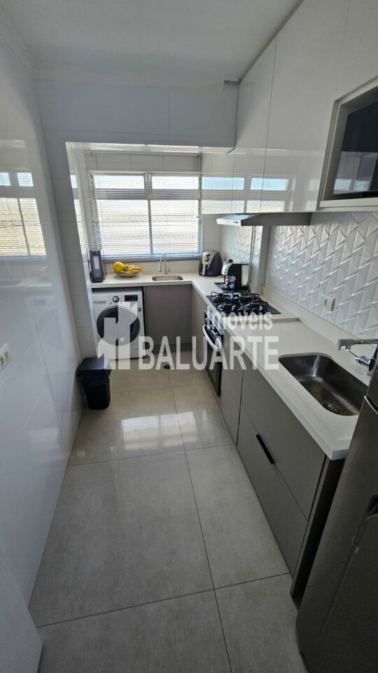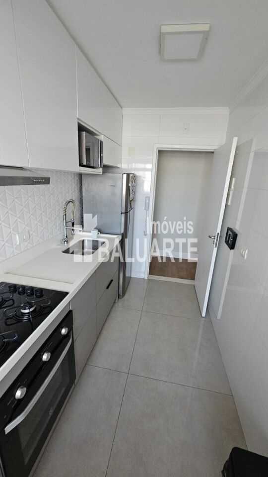Apartamento de 72 m² recém reformado, muito aconchegante, tudo novo. São 3 dormitórios, sendo 1 suíte e um usado como closet hoje; Sala 2 ambientes com sacada integrada, forro em gesso com sanca e iluminação embutida, tornando o ambiente muito agradável e aconchegante. Cozinha azulejada até o teto com armários e piso em porcelanato, área de serviço, banheiros com box de vidro e gabinete. Piso laminado no corredor, sala e quartos.