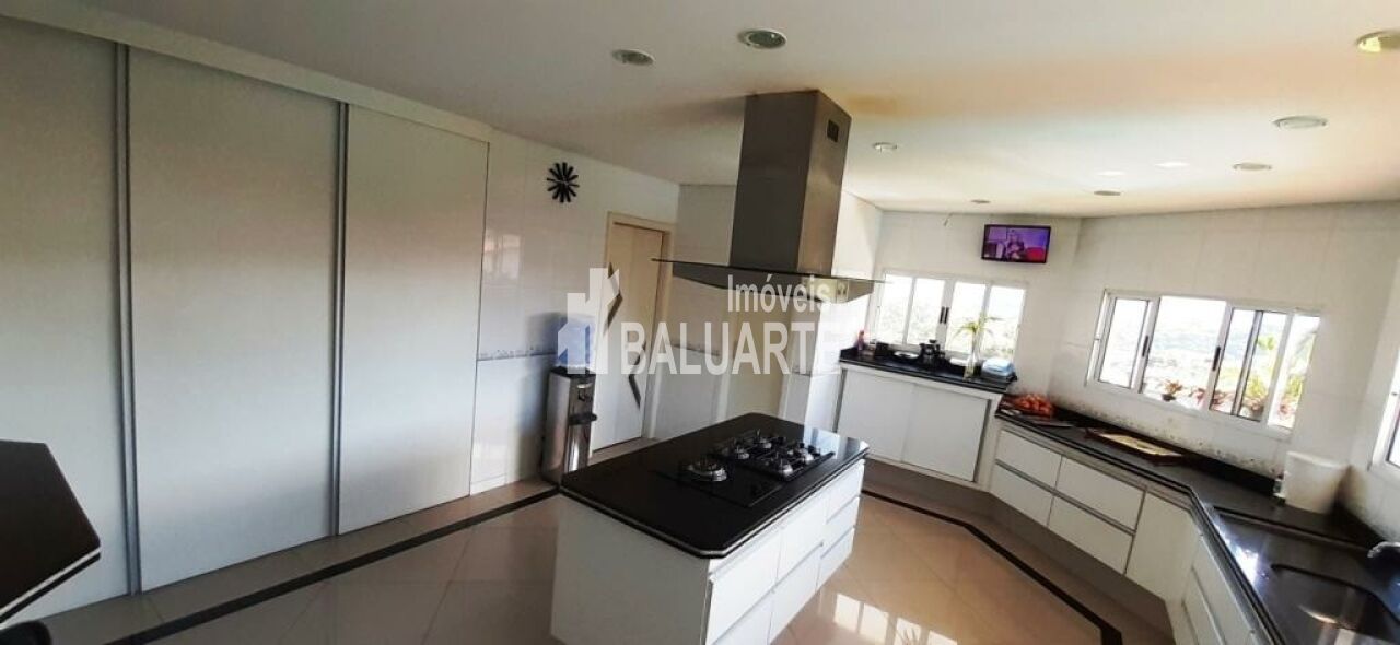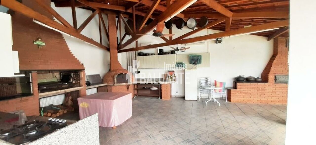 Área gourmet- quiosque de 70m2 com fechamento de vidro e ar condicionado, 2 churrasqueiras, forno de pizza (prof.) Fogão e forno caipira, fogão de 5 bocas a gás - lava louças. Mesa para 24 pessoas.