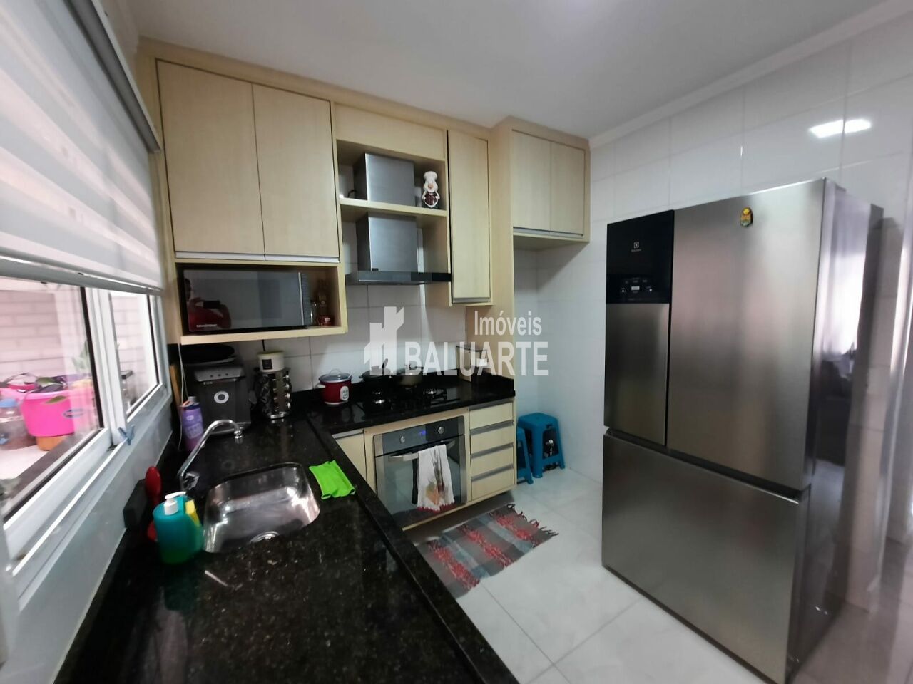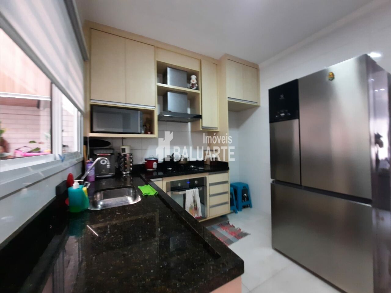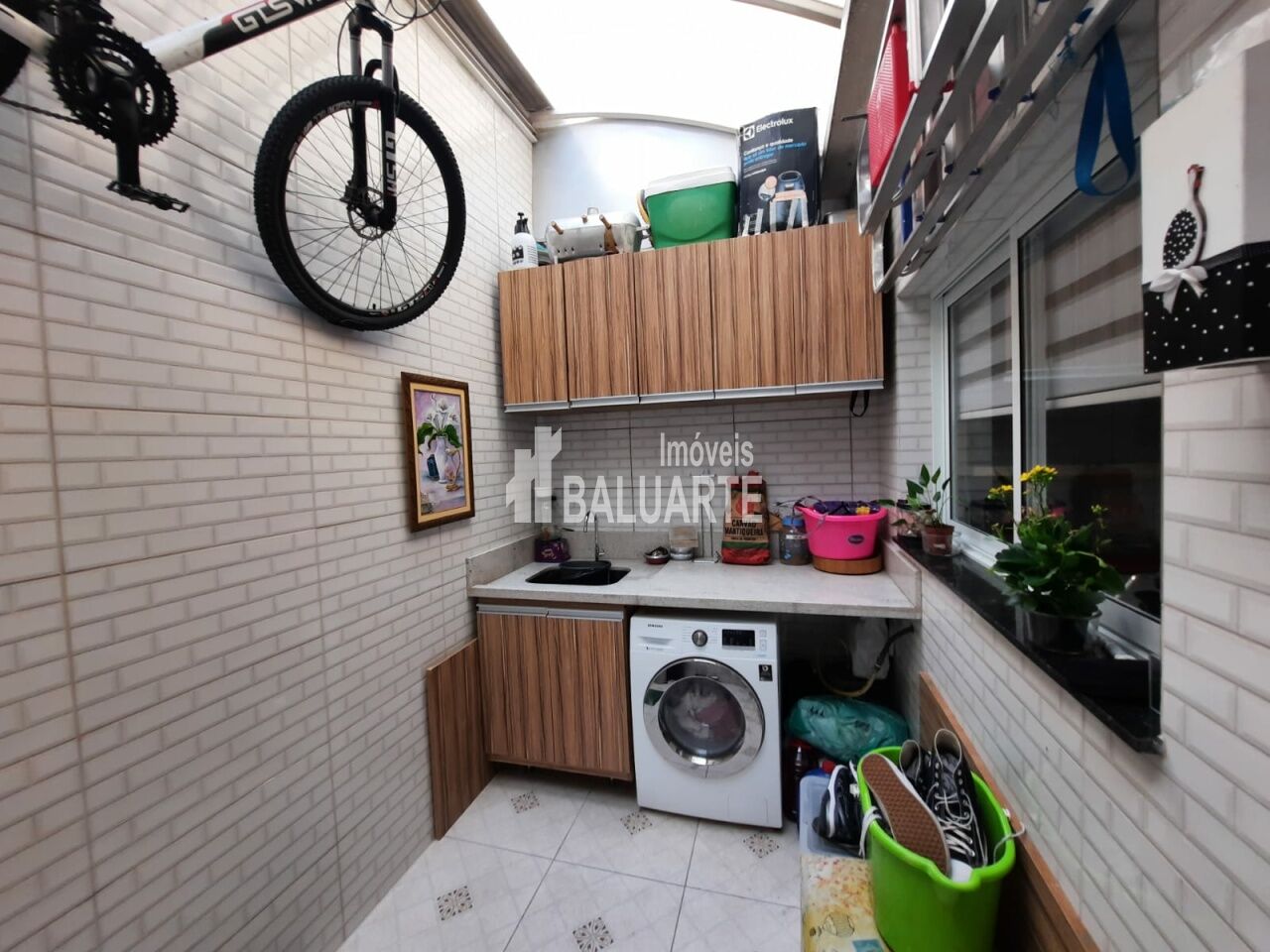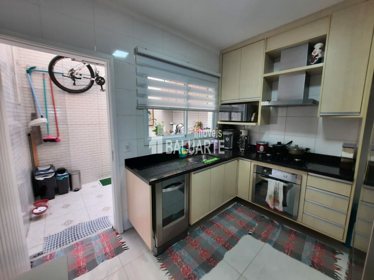 3 dormitórios sendo uma sute com sacada e armários planejados nos dormitórios, sala com dois ambientes ,lavabo, cozinha com pia de mármore de cor preta e armários planejado e lavanderia com cobertura , duas vagas de garagem e portão automático.
