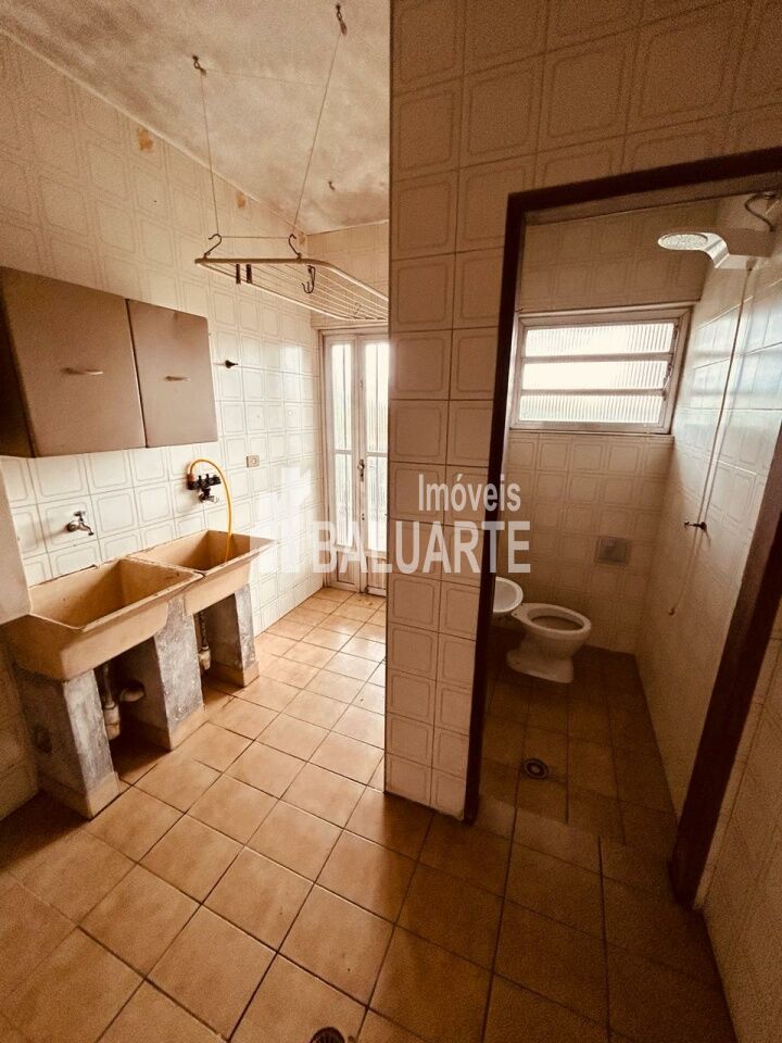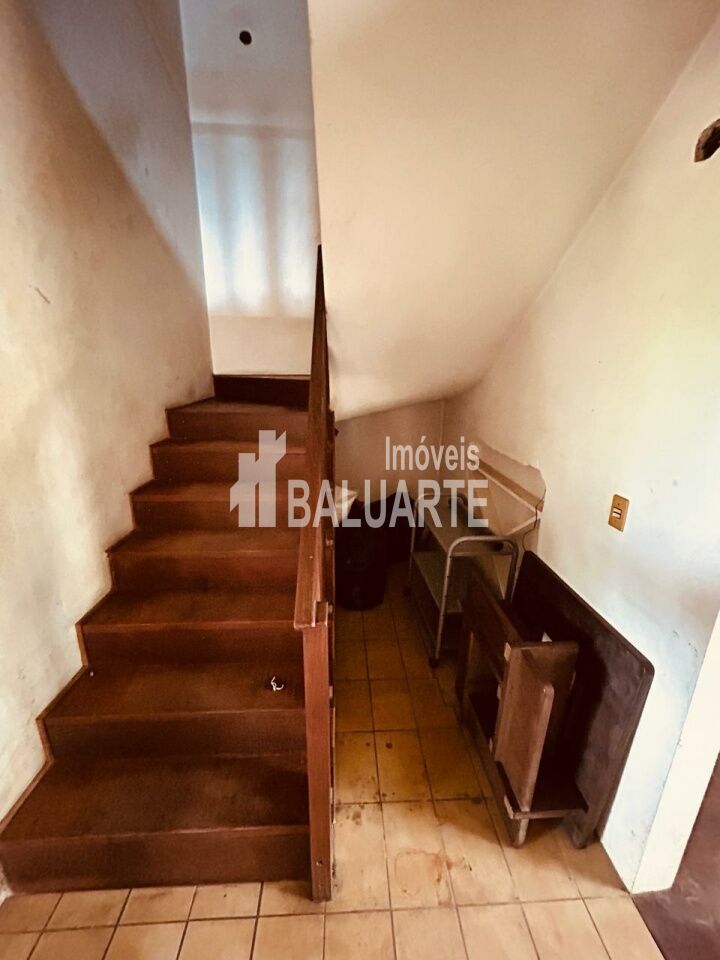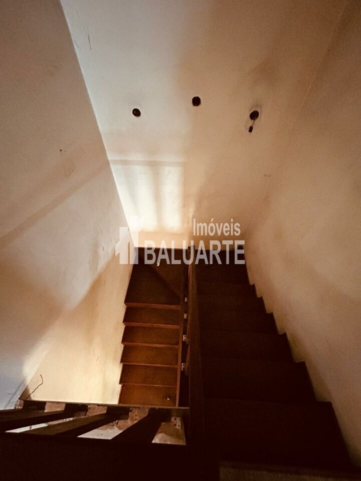 Na parte inferior, escada de acesso em madeira peroba, sala de estar e jantar em tabua corrida, banheiro social, ampla cozinha com piso cerâmica, área de serviço com banheiro auxiliar e varanda nos fundos da cozinha.