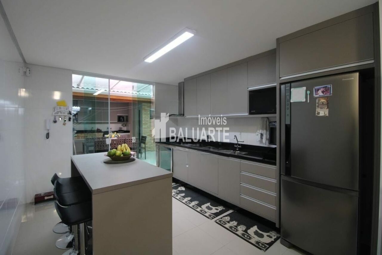 Possui 3 dormitórios, 3 suítes, closet, sala para 2 ambientes, lavabo, cozinha integrado com a sala, quintal com churrasqueira e banheiro, área de serviço e 4 vagas de garagem com portão automático.