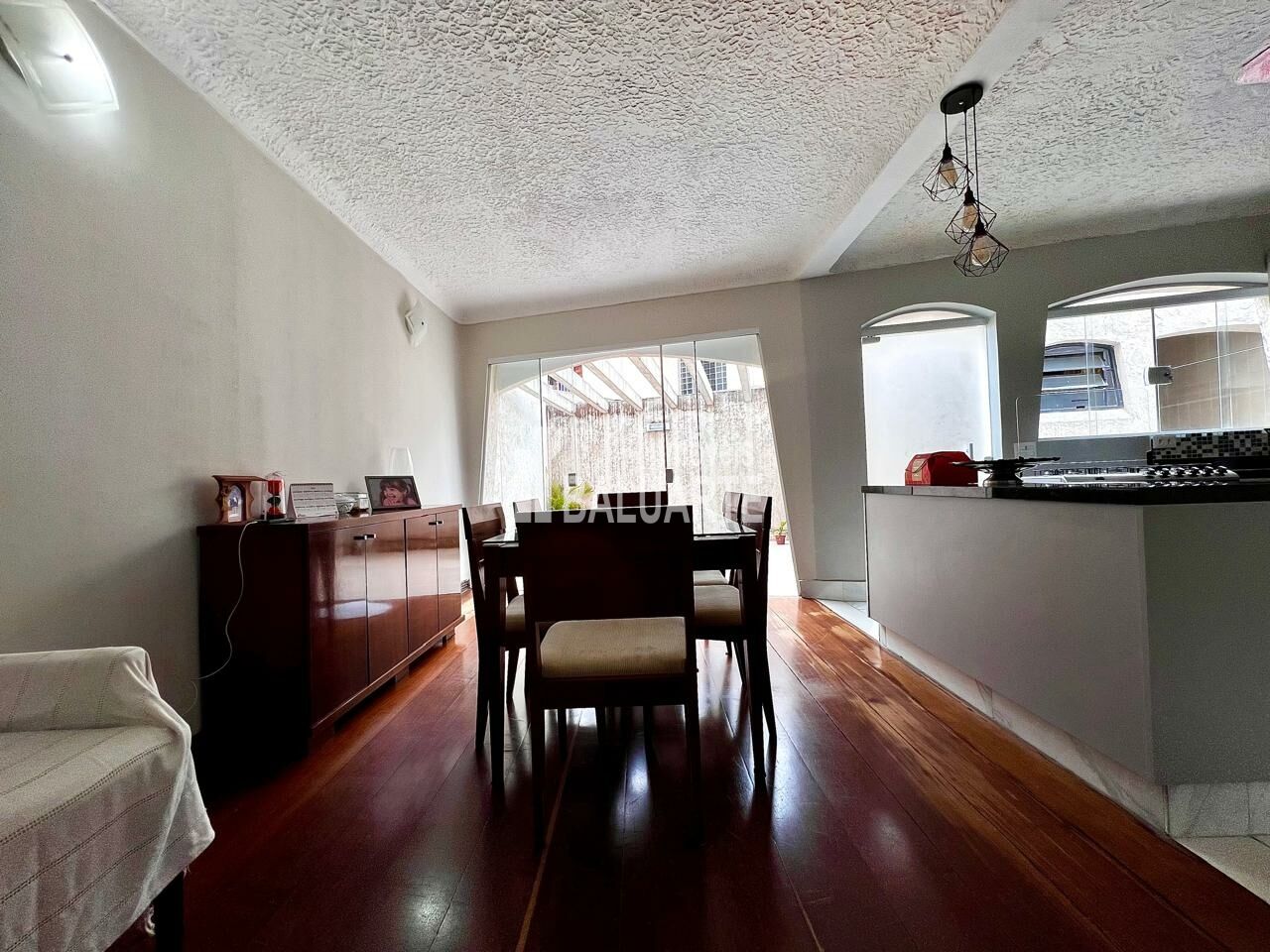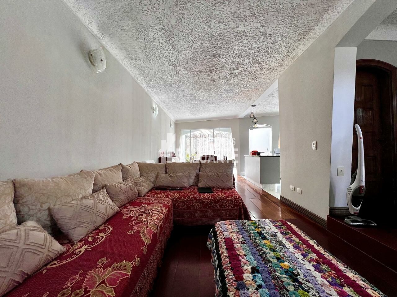 Logo ao entrar, você percebe: as curvas das paredes, o teto texturizado, o piso de madeira maciça? tudo aqui carrega personalidade. Não é uma casa comum. É daquelas que abraçam.